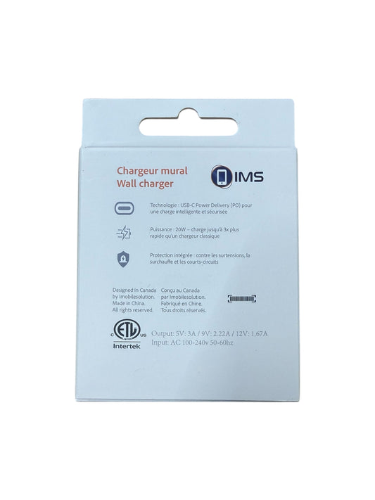 Usb-C 20w wall charger white(No packaging) ''Restricted Sale In Canada''